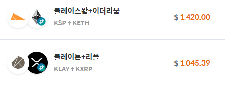 둘 남기고 나머진 손절로 다 팔고 Klay kXRP와 Klay KETH로 돈을 옮겼다.