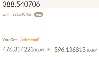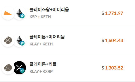 보면, KLAY+KXRP의 수량은 변하지 않았고(388.540706) KLAY+KETH와 KSP+KETH는 변했다.