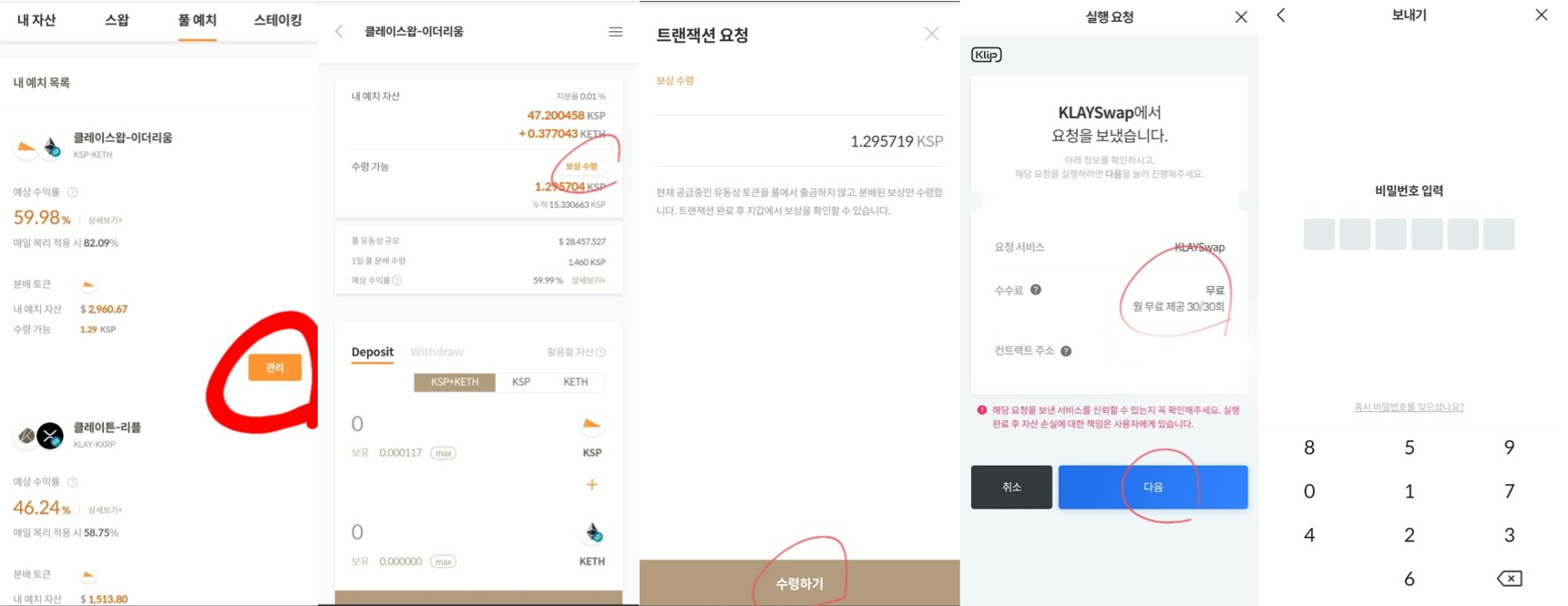 보상 수령하는 데 무료 수수료 3회, 예치하는데 무료 수수료 2회, 총 5회.